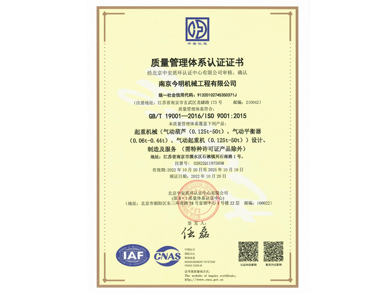 南京今明機(jī)械工程有限公司成立于一九九三年,歷經(jīng)二十多年磨練,沉淀了一批跟隨企業(yè)共同成長(zhǎng),技藝超凡、資深的高級(jí)工程師、技師、以及熟練的技術(shù)工人。企業(yè)的歷練和人才的智慧,鑄造出企業(yè)的核心競(jìng)爭(zhēng)力。十年磨一劍。本著技術(shù)興業(yè),多年來(lái),企業(yè)致力于氣動(dòng)起重產(chǎn)品的研發(fā)與生產(chǎn)。在國(guó)內(nèi)氣動(dòng)起重裝備領(lǐng)域具有良好的聲譽(yù)。并積極地與國(guó)家起重運(yùn)輸機(jī)械質(zhì)量監(jiān)督檢驗(yàn)中心、北京起重運(yùn)輸機(jī)械設(shè)計(jì)研究院、江蘇省科技廳、南航等高校和科研單位緊密合作,與國(guó)外知名企業(yè)建立戰(zhàn)略合作伙伴關(guān)系,廣泛吸收國(guó)內(nèi)外新技術(shù)經(jīng)驗(yàn),力求趕超國(guó)際先進(jìn)氣動(dòng)起重裝備的技術(shù),打造國(guó)內(nèi)氣動(dòng)起重裝備行業(yè)新軍。目前,企業(yè)已開(kāi)發(fā)五大系列近百個(gè)品種的產(chǎn)品,覆蓋了化工、汽車、機(jī)械、冶金、礦山等二十多個(gè)行業(yè),并在全國(guó)三十多個(gè)省份擁有客戶。企業(yè)堅(jiān)持用心做好每個(gè)環(huán)節(jié),精心打造讓客戶滿意的產(chǎn)品,力求...